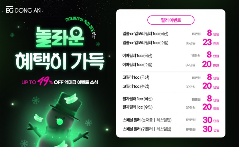 진행중인 이벤트 1월, 새해맞이 특별한 이벤트가 도착했어요♥ 조회조회수 3,857회 페이지 정보 작성자 최고관리자 댓글 댓글 0건 조회Hit 3,857회 작성일Date 25-09-09 10:53 본문 목록 답변 이전글[최대 물량 확보] 마운자로 도입 기념 이벤트 소식♥ 25.09.12 다음글토르 리프팅 이벤트 25.06.03 댓글 0 댓글목록 등록된 댓글이 없습니다.